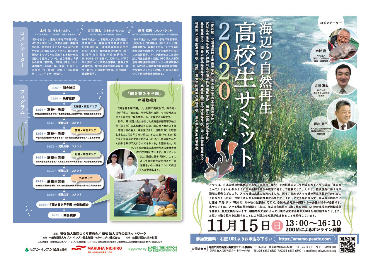 「海辺の自然再生・高校生サミット2020」として、オンライン開催されることになりました!