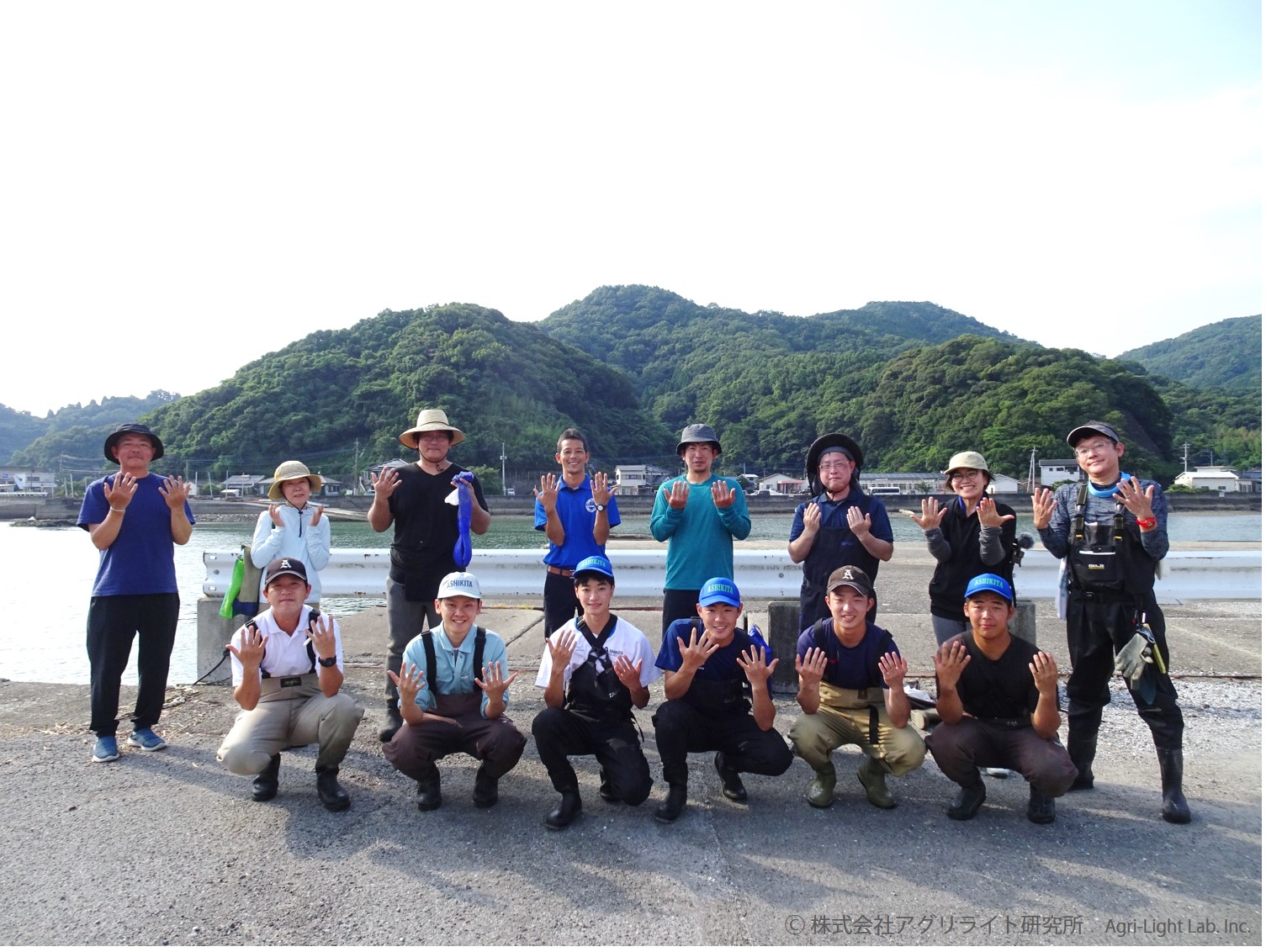 (左上)水色キャップの方が、ちょうど教育実習期間中で参加した鬼塚先生。なんと4年前卒業のアマモ班OBです。