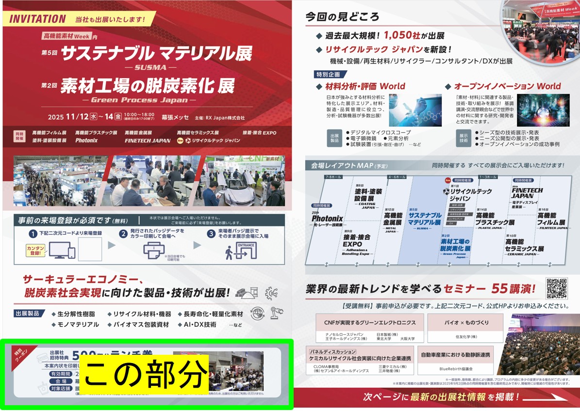 ↓ <来場者特典 500円分ランチ券付き>展示会チラシPDF